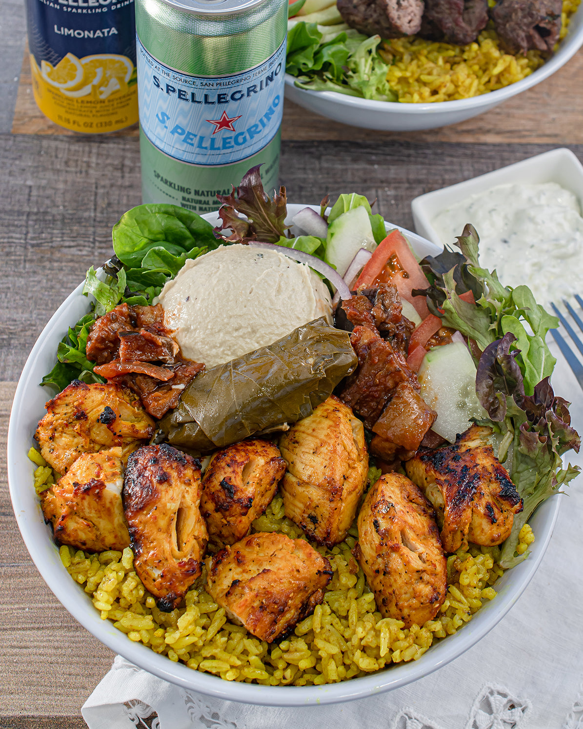 7 Protein Portions, Rice, Salad, 3 Appetizers, 3 Toppings & 3 Choices of Sauce